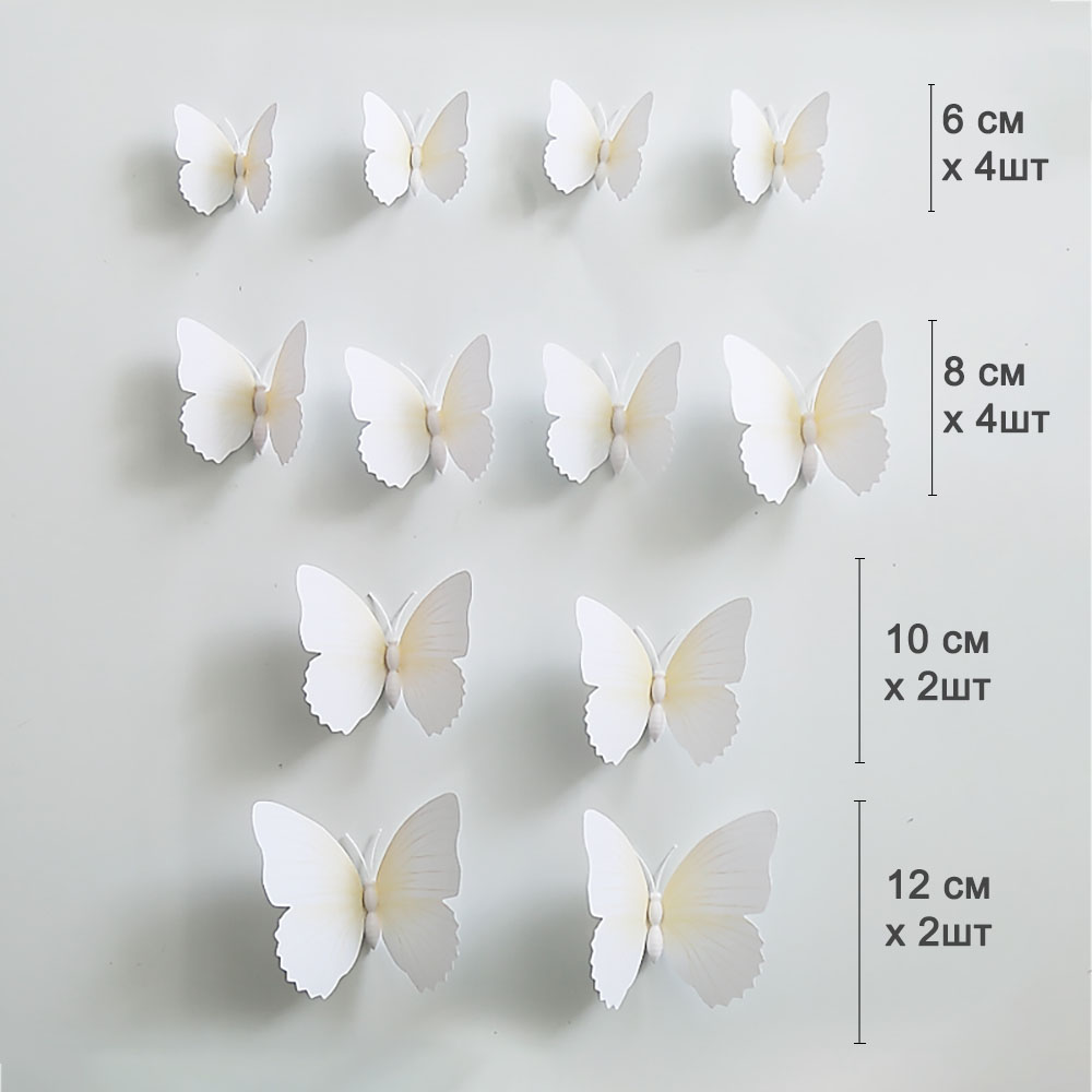 Бабочки на булавке 12 шт пластик айвори