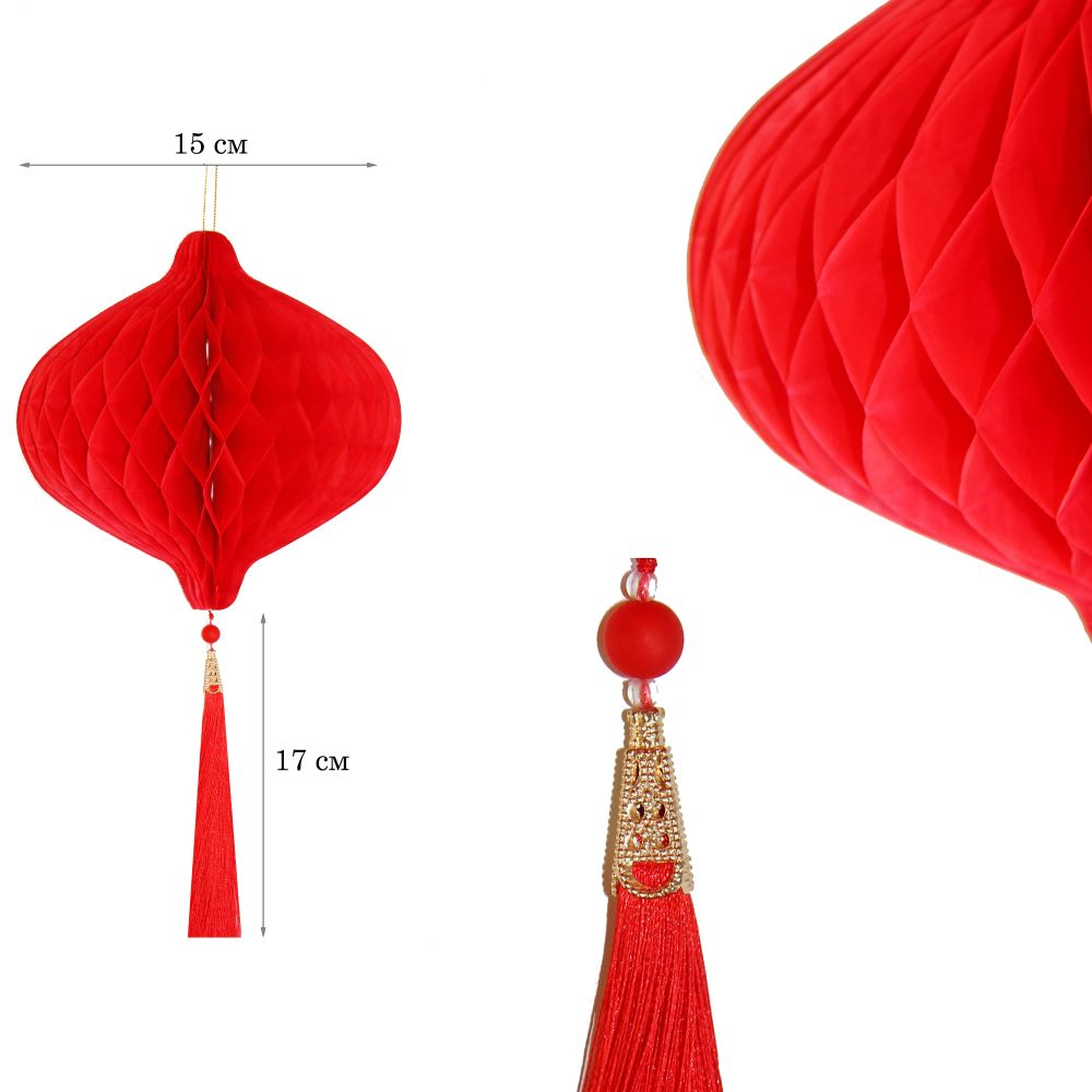 Бумажное украшение Шар-соты с кисточкой, красный - 1шт.