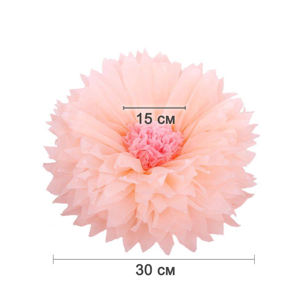 Бумажный цветок 30 см персиковый+светло-розовый