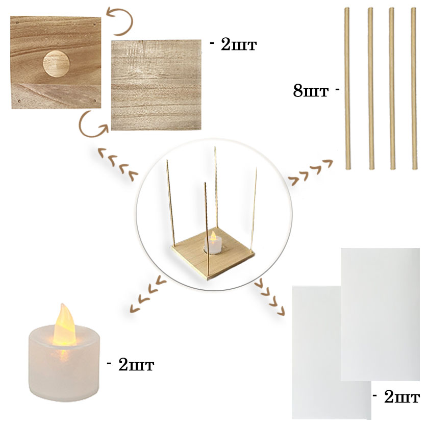 Фонарик на деревянной доске LED, 2шт 15х24см