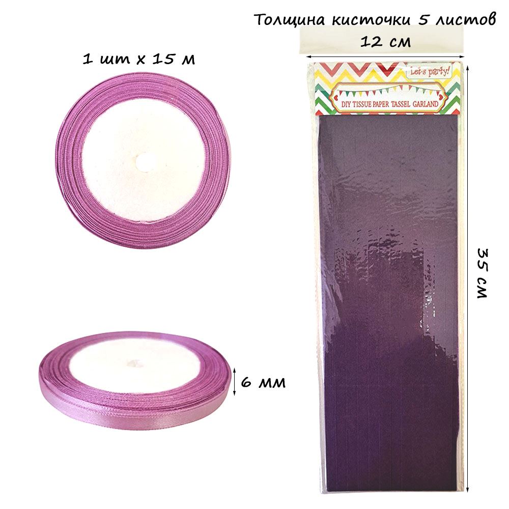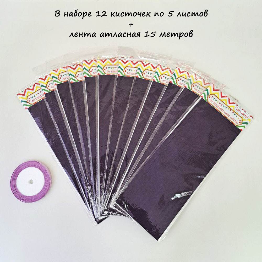 Гирлянда тассел 12 кисточек по 5 листов, фиолетовый