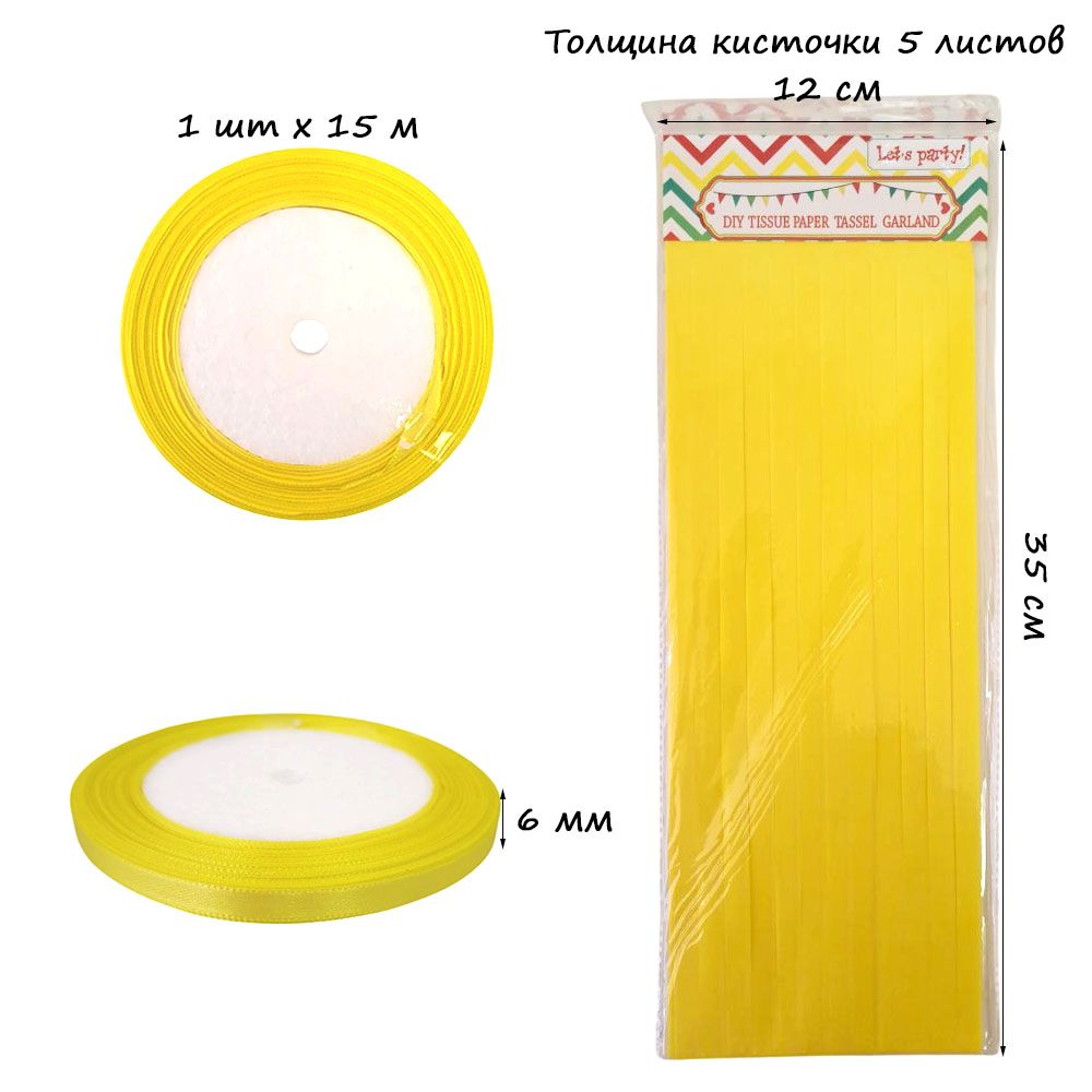 Гирлянда тассел 12 кисточек по 5 листов, желтый