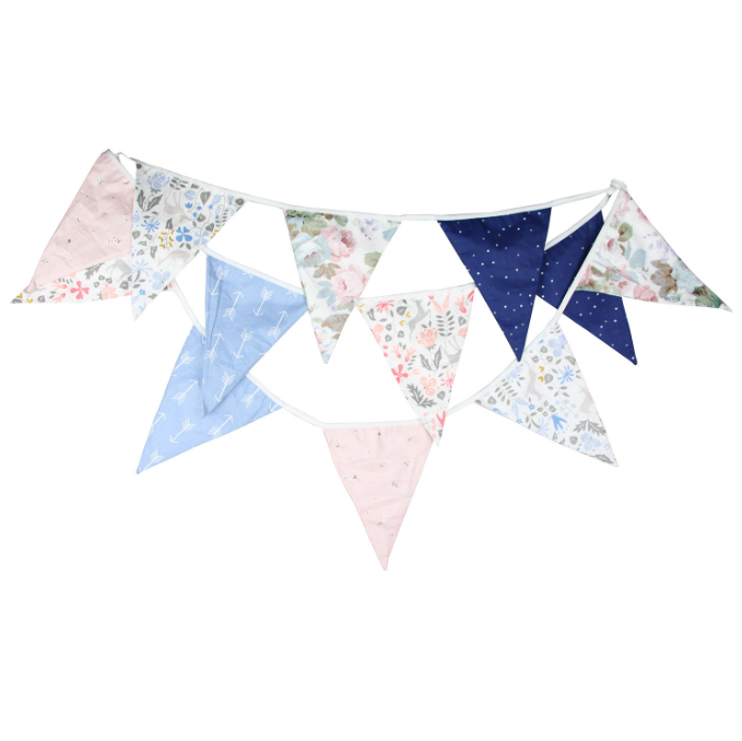 Гирлянда состоит из 12 флажков. Расстояние между флажками - 6 см, общая длина составляет 4 м.