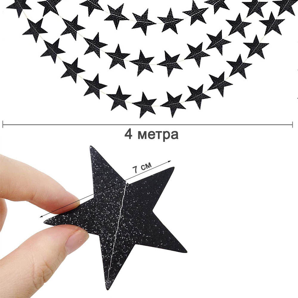 Гирлянда "Звезды" блеск 7 см х 4 м, черный