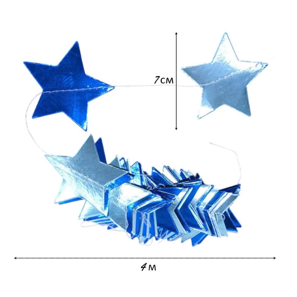 Гирлянда "Звезды" металлик 7 см х 4 м, голубой+т.синий
