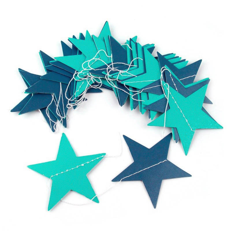 Гирлянда "Звезды" перламутровые 10 см х 4 м, Мятный+т.Синий