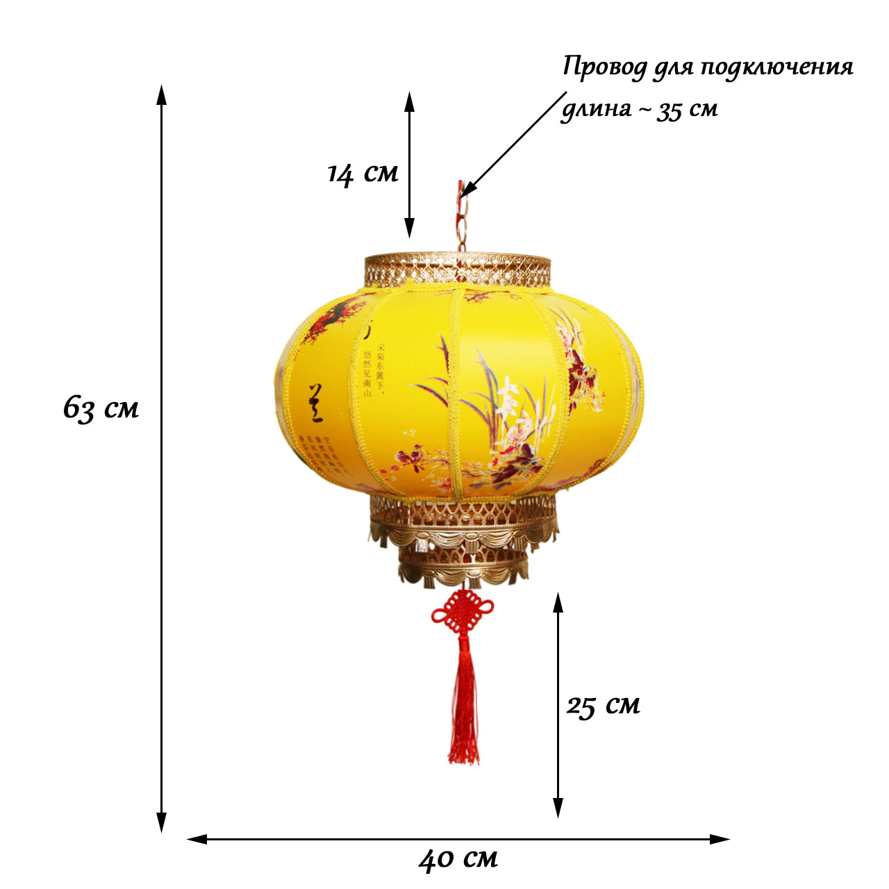 Китайский подвесной фонарь с цоколем d-40 см, №7
