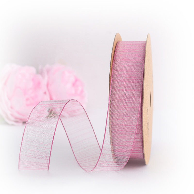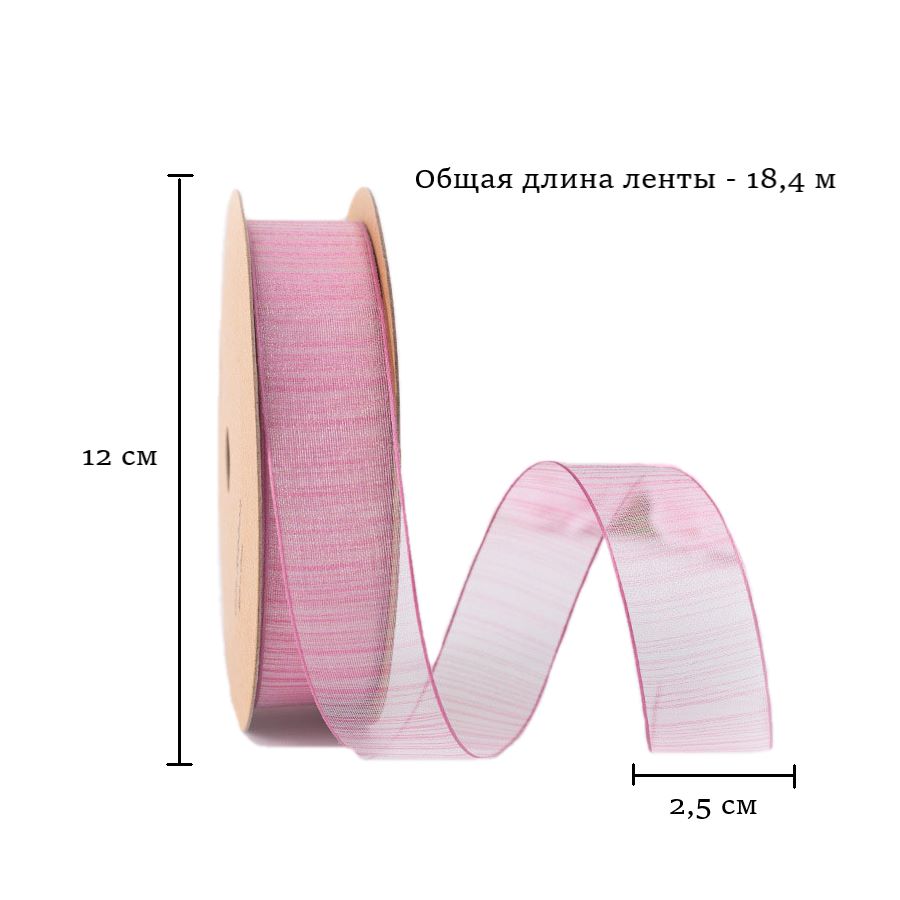 Лента из органзы полосы розовая 2,5см х 18,4м
