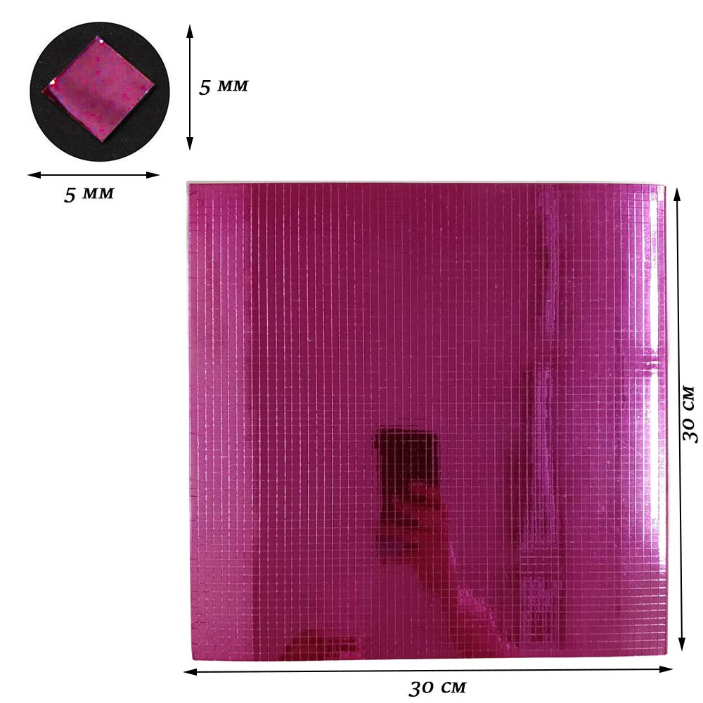 Лента самоклеящаяся зеркальная мозаика стекло, 30х30см 5х5мм, малиновый