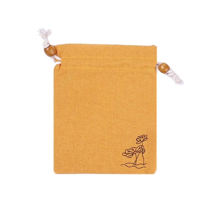 Мешочек из искусственного льна с орнаментом 14х19 см, желтый