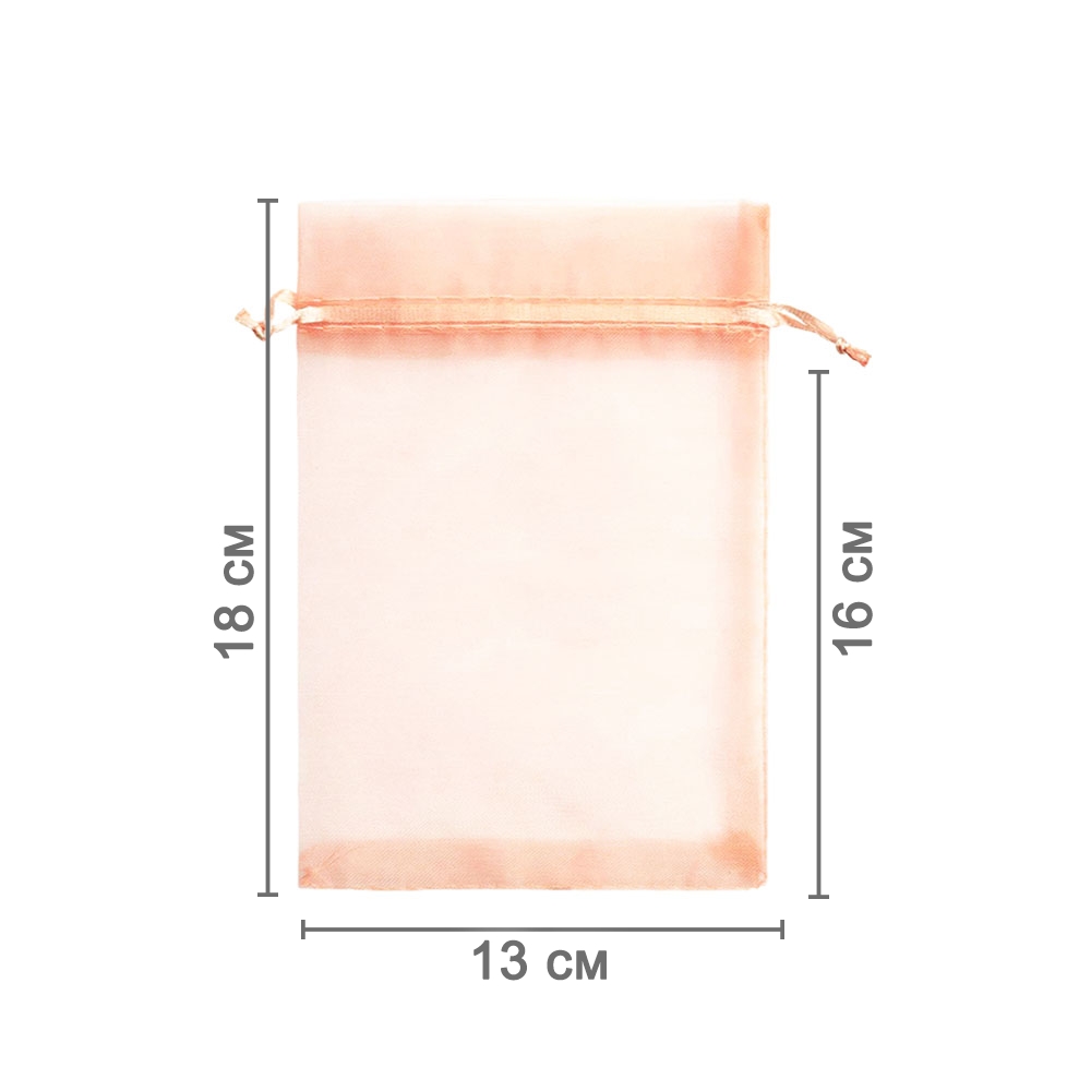 Мешочек из органзы 13 х 18 см  — стильное решение для упаковки мелких и средних предметов. Лёгкая полупрозрачная ткань красиво подчёркивает содержимое.