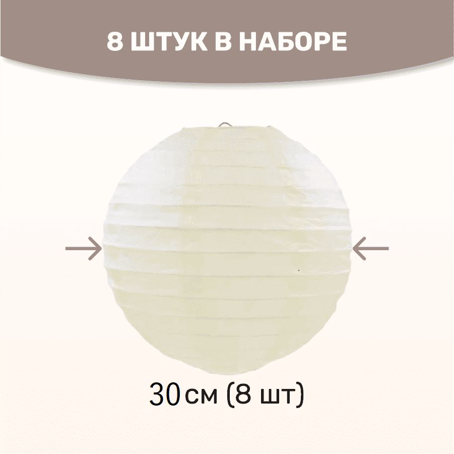 В комплект входит 8 бумажных фонариков и лента атласная.