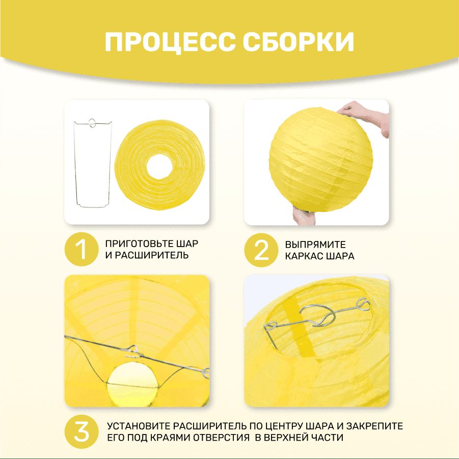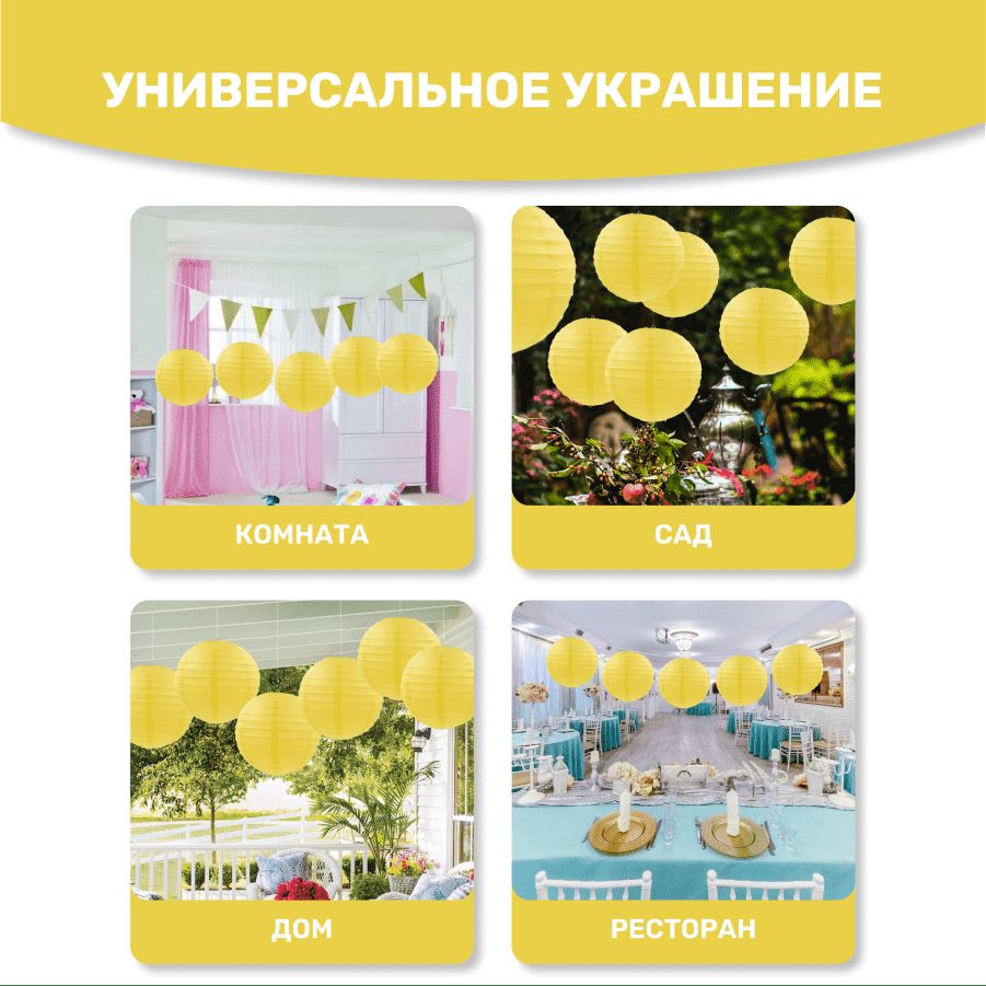 В комплект входит 8 бумажных фонариков и лента атласная.
