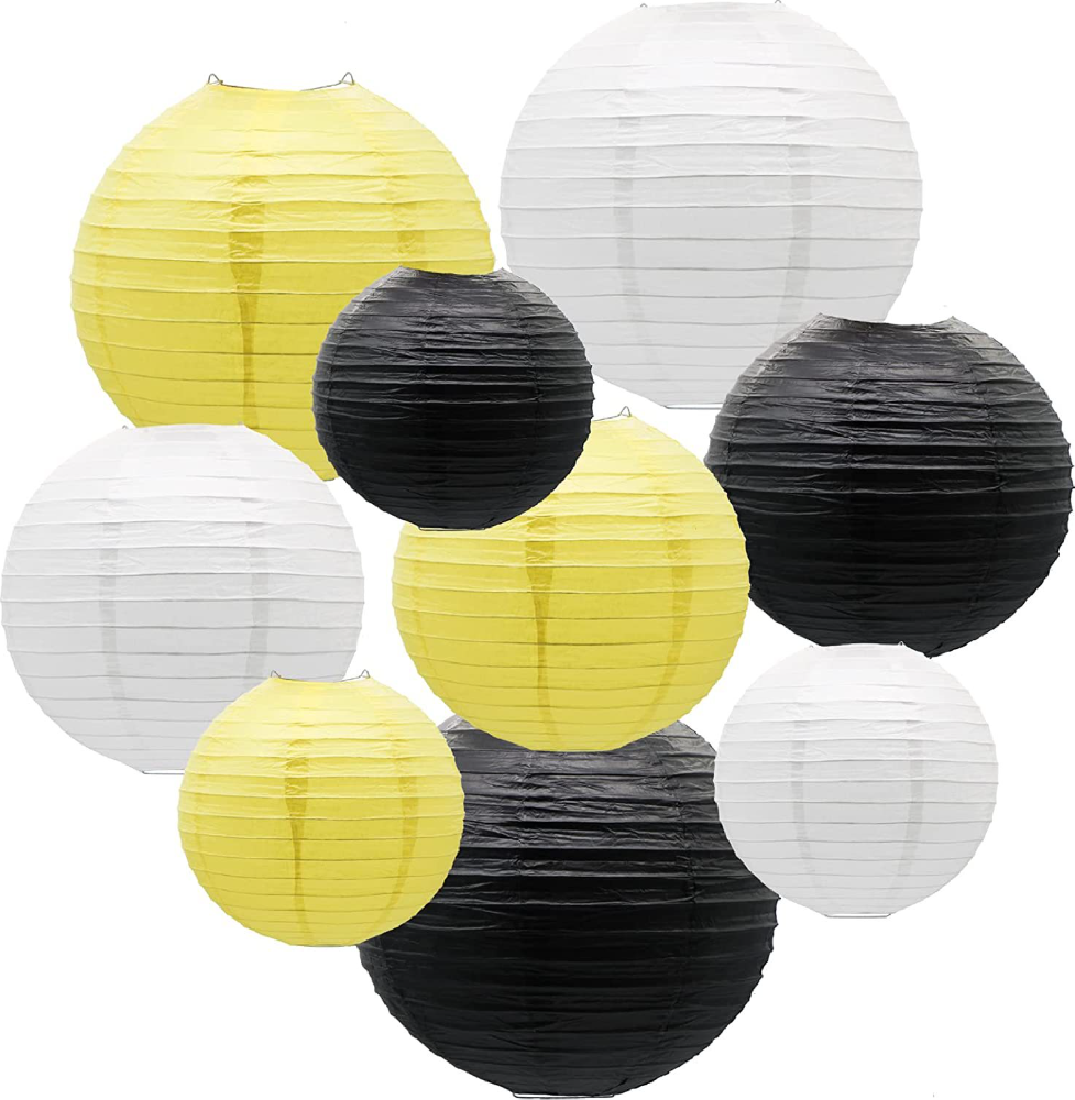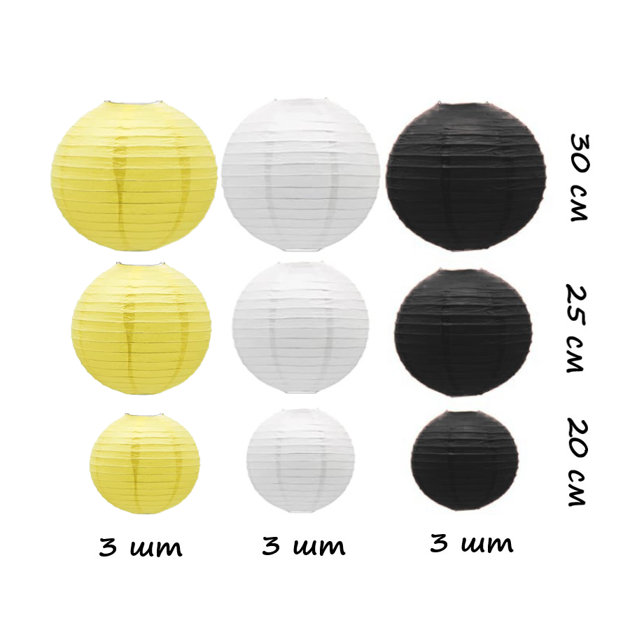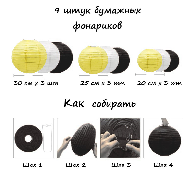 Набор подвесные фонарики 9 шт, белый+черный+желтый