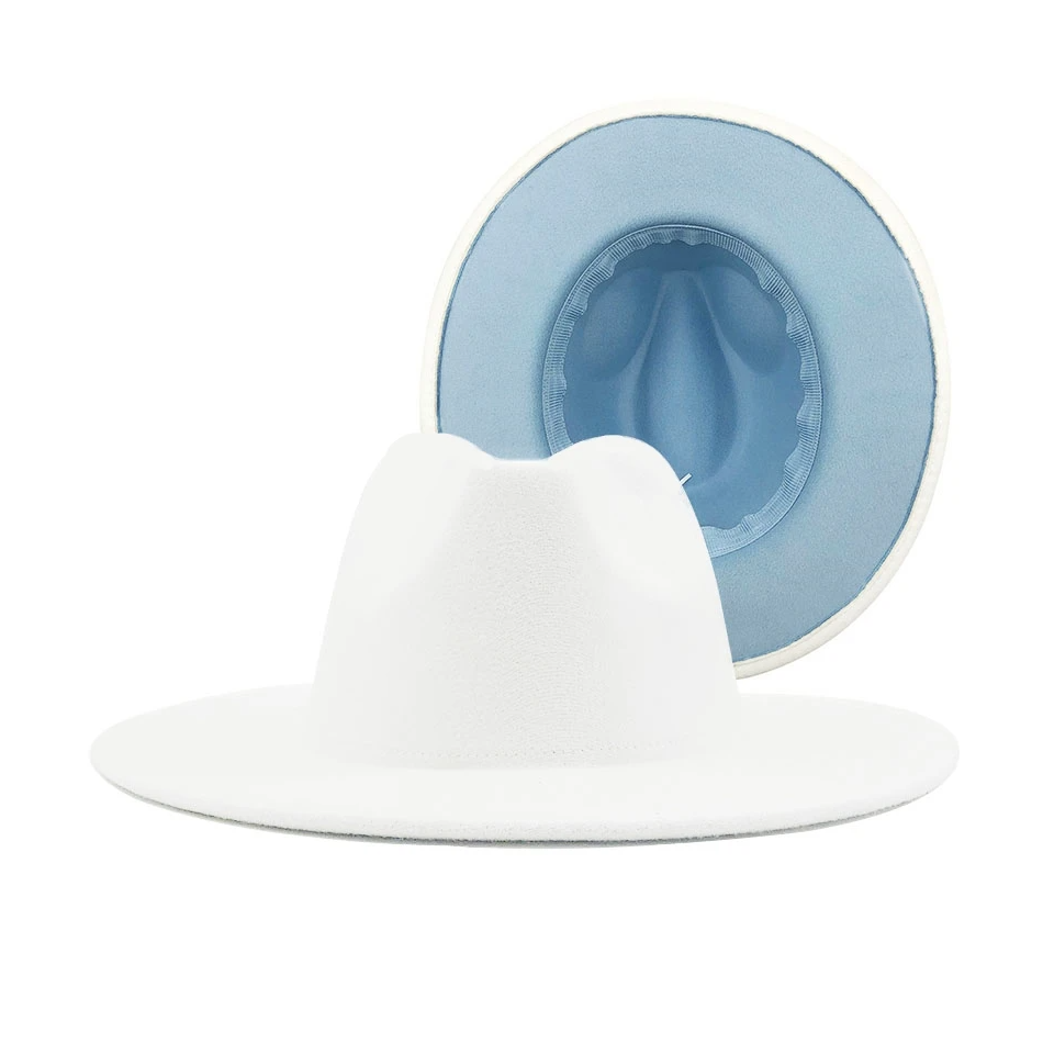 Шляпа Федора фетровая 2 цвета, белый+св.голубой
