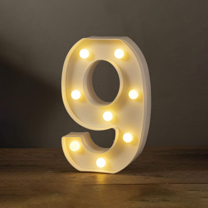 Цифра 9 светодиодная 21 см, от батареек , теплый белый