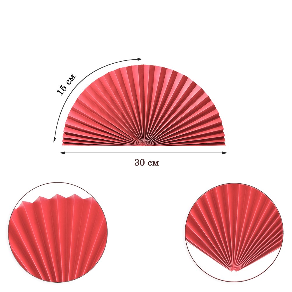 Веер-гармошка 160г/м 30 см, алый
